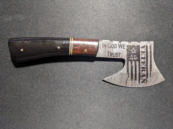I custom Etch these beautiful Handmade Damascus Steel Knives with a laser!! The images etched in the blade will not wipe off or rust.
